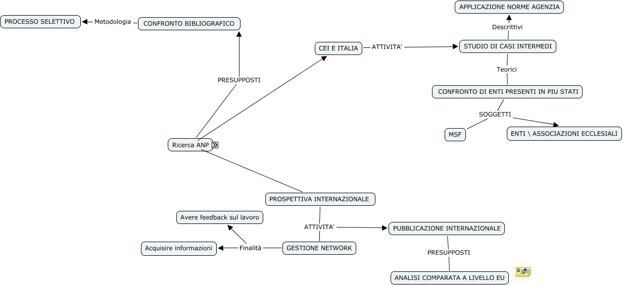 Questa Cmap, creata con IHMC CmapTools, contiene informazioni relative a: PROGETTO ANP, CEI E ITALIA ATTIVITA' STUDIO DI CASI INTERMEDI, GESTIONE NETWORK Finalità Acquisire informazioni, Progetto accounting ANP FILONE 2 PROSPETTIVA INTERNAZIONALE, PUBBLICAZIONE INTERNAZIONALE PRESUPPOSTI ANALISI COMPARATA A LIVELLO EU, CONFRONTO BIBLIOGRAFICO Metodologia PROCESSO SELETTIVO, STUDIO DI CASI INTERMEDI Descrittivi APPLICAZIONE NORME AGENZIA, CONFRONTO DI ENTI PRESENTI IN PIU STATI SOGGETTI MSF, STUDIO DI CASI INTERMEDI Teorici CONFRONTO DI ENTI PRESENTI IN PIU STATI, Ricerca ANP PRESUPPOSTI CONFRONTO BIBLIOGRAFICO, PROSPETTIVA INTERNAZIONALE ATTIVITA' PUBBLICAZIONE INTERNAZIONALE, PROSPETTIVA INTERNAZIONALE ATTIVITA' GESTIONE NETWORK, GESTIONE NETWORK Finalità Avere feedback sul lavoro, CONFRONTO DI ENTI PRESENTI IN PIU STATI SOGGETTI ENTI \ ASSOCIAZIONI ECCLESIALI, Progetto accounting ANP FILONE 1 CEI E ITALIA