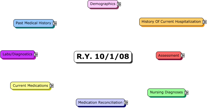 This Concept Map, created with IHMC CmapTools, has information related to: 10-1 CMAP Caddle, Tamsulosin Brand Name Flomax, Gabapentin Reason for Recieving Neuropathic pain, Ferrous Sulfate Physician's Order 300mg PO with breakfast, Loratidine Reason for Recieving Seasonal allergy relief, Acute pain related to presence of chest tube. Intervention Work to prevent pain by timing medications and comfort measures. Encourage client to report pain immediately, timely interventions are more effective at alleviating pain., Loratidine Nursing Indications Administer on empty stomach. May cause drowsiness and photosensitivity, Heparin Pertinent Lab Values PTT should be 1.5-2x control for therapeutic dosing., Heparin Nursing Indications Assess PTT, blood studies. Increased bleeding risk. When administering SubQ do not aspirate or massage area., Integumentary 17:00 22 gauge IV heplock L forearm. Appropriately moist and warm to touch, mobile with adequate turgor. No signs of breakdown on pressure areas. Serosanguanous drainage at chest tube site, covered with an ABD pad. Steristrips on left upper chest from implantable cardioverter-defibrillator placement are clean dry and intact., Folic Acid Vitamin b-9 Reason for Recieving Folic acid deficiency, GI/GU 17:00 Abdomen is soft, round, nontender. Bowel sounds normoactive x4. Client is incontinent., Loratidine Physician's Order 10mg PO daily, Sertraline Reason for Recieving Depression, Neuromuscular 17:00 A&Ox3, Generalized muscle weakness. Fall risk=3. Full ROMx4. PERRL. Sensation intact in all extremties., Gabapentin Classification Anticonvulsant, CBC 10/1 WBC=5.8 RBC=3.69 Hgb=11.9 Hct=36.7 Plt=162, Heparin Classification Anticoagulant, Antithrombolytic, Tamsulosin Physician's Order .4mg PO HS, Metoprolol Reason for Recieving Hypertension, Sertraline Nursing Indications Fatal reaction if used with an MAOI. Do not discontinue abruptly. Assess for changes in mental status for improvement.