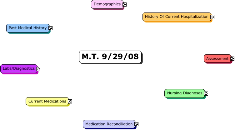 This Concept Map, created with IHMC CmapTools, has information related to: 9-29 CMAP Caddle, Verapamil Classification Ca Channel blocker, antihypertensive, antianginal, diphenylalkylamine, Multivitamin Classification Vitamins, Risk for imbalanced nutrition, less than body requirements, related to impaired ability to absorb nutrients associated with colostomy and reduced intake due to pain. Intervention Calculate basal energy expenditure using Harris-Benedict formula and estimate the client's caloric and protein requirements, Gen. Chem. Interpretation Glucose is elevated at times, related to DM. BUN and creatinine elevated related to renal failure. Potassium is also high but perhaps less life threatening because she has chronic renal failure. Her dialysis treatment was changed to bring the potassium down., Metoprolol Nursing Indications BP and apical pulse before adminstration., Nystatin Classification Antifungal, Amphoteric polyene, Insulin Regular Human Nursing Indications Monitor for s/s Hypoglycemia, Verapamil Reason for Recieving In combination with digoxin for dysrhythmias, Integumentary 16:30 Double lumen power PICC right upper extremity, no redness tenderness or swelling. Dialysis catheter right subclavian, no redness, tenderness., swelling, or drainage at site. Appropriately moist and warm to touch, mobile with adequate turgor, pink. No signs of breakdown on pressure areas., Famotidine Brand Name Pepcid, Respiratory 16:30 Regular rate and rhythm. Crackles heard in lower lobes bilaterally, other lobes clear to ausculatation. Oxygen saturation of 98% on 2L. Reformed smoker., Escitalopram Classification Antidepressant, SSRI, Metoprolol Reason for Recieving Hypertension, CBC 9/27 WBC=8.2 RBC=4.06 Hgb=11.7 Hct=39.5 Plt=168, Risk for imbalanced fluid volume related to inability of the kidneys to regulate intake and output. Intervention Weigh daily and address changes as they relate to fluid status., Heparin Reason for Recieving Prophylaxis for DVT, Heparin Pertinent Lab Values PTT should be 1.5-2x control for therapeutic dosing., Digoxin Brand Name Digoxin, Lanoxin, Digoxin Physician's Order .125mg PO Q48 hr, Nystatin Brand Name Mycostatin, Nilstat