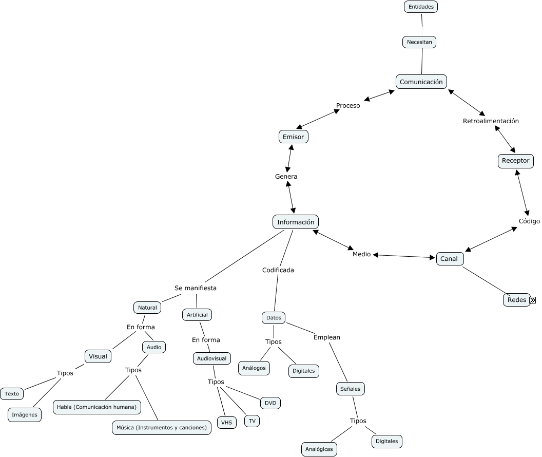 Mapa II, Comunicación Proceso Emisor, Emisor Genera Información, Señales Tipos Digitales, Audio Tipos Habla (Comunicación humana), Audiovisual Tipos TV, Telecomunicaciones Tipos TV, Datos Tipos Análogos, Telecomunicaciones Tipos Teléfonia, Redes de datos Tipo Información Audio Voz Musica Video Datos, Información Se manifiesta Artificial