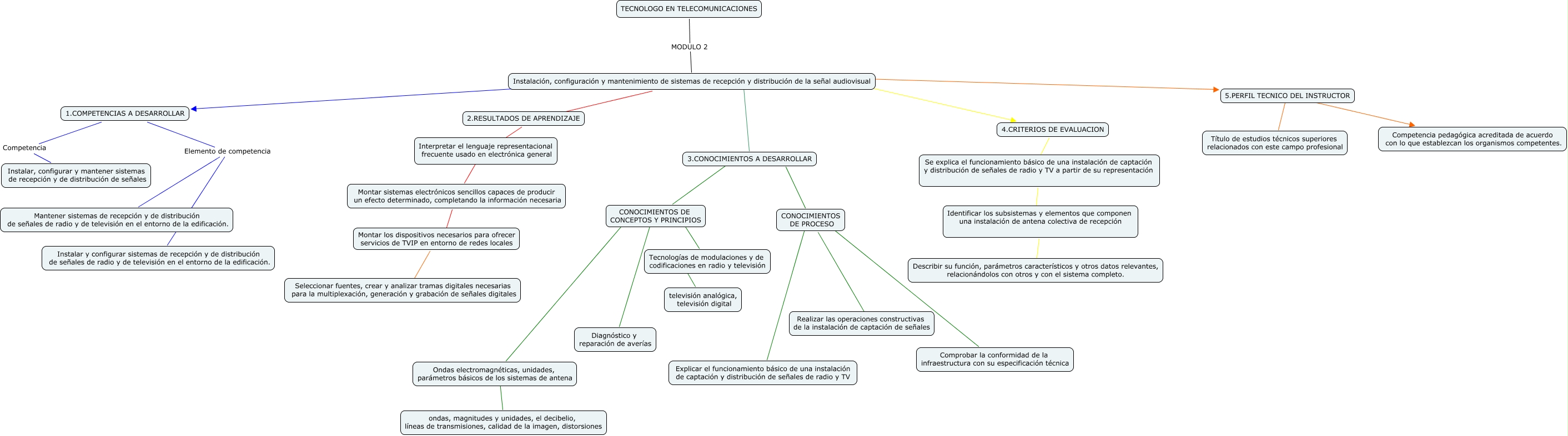 Este Cmap, tiene información relacionada con: Modulo 2, Identificar los subsistemas y elementos que componen una instalación de antena colectiva de recepción ???? Describir su función, parámetros característicos y otros datos relevantes, relacionándolos con otros y con el sistema completo., Ondas electromagnéticas, unidades, parámetros básicos de los sistemas de antena ???? ondas, magnitudes y unidades, el decibelio, líneas de transmisiones, calidad de la imagen, distorsiones, 1. COMPETENCIAS A DESARROLLAR Elemento de competencia Mantener sistemas de recepción y de distribución de señales de radio y de televisión en el entorno de la edificación., 1. COMPETENCIAS A DESARROLLAR Elemento de competencia Instalar y configurar sistemas de recepción y de distribución de señales de radio y de televisión en el entorno de la edificación., CONOCIMIENTOS DE CONCEPTOS Y PRINCIPIOS ???? Diagnóstico y reparación de averías, CONOCIMIENTOS DE PROCESO ???? Realizar las operaciones constructivas de la instalación de captación de señales, 1. COMPETENCIAS A DESARROLLAR Competencia Instalar, configurar y mantener sistemas de recepción y de distribución de señales, CONOCIMIENTOS DE PROCESO ???? Explicar el funcionamiento básico de una instalación de captación y distribución de señales de radio y TV, 4. CRITERIOS DE EVALUACION ???? Se explica el funcionamiento básico de una instalación de captación y distribución de señales de radio y TV a partir de su representación, Instalación, configuración y mantenimiento de sistemas de recepción y distribución de la señal audiovisual ???? 3. CONOCIMIENTOS A DESARROLLAR, CONOCIMIENTOS DE CONCEPTOS Y PRINCIPIOS ???? Tecnologías de modulaciones y de codificaciones en radio y televisión, Instalación, configuración y mantenimiento de sistemas de recepción y distribución de la señal audiovisual ???? 1. COMPETENCIAS A DESARROLLAR, Montar sistemas electrónicos sencillos capaces de producir un efecto determinado, completando la información necesaria ???? Montar los dispositivos necesarios para ofrecer servicios de TVIP en entorno de redes locales, CONOCIMIENTOS DE PROCESO ???? Comprobar la conformidad de la infraestructura con su especificación técnica, Instalación, configuración y mantenimiento de sistemas de recepción y distribución de la señal audiovisual ???? 4. CRITERIOS DE EVALUACION, 3. CONOCIMIENTOS A DESARROLLAR ???? CONOCIMIENTOS DE PROCESO, CONOCIMIENTOS DE CONCEPTOS Y PRINCIPIOS ???? Ondas electromagnéticas, unidades, parámetros básicos de los sistemas de antena, TECNOLOGO EN TELECOMUNICACIONES MODULO 2 Instalación, configuración y mantenimiento de sistemas de recepción y distribución de la señal audiovisual, 2. RESULTADOS DE APRENDIZAJE ???? Interpretar el lenguaje representacional frecuente usado en electrónica general, Instalación, configuración y mantenimiento de sistemas de recepción y distribución de la señal audiovisual ???? 2. RESULTADOS DE APRENDIZAJE