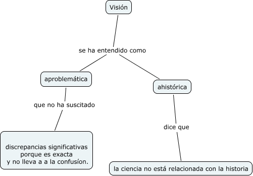 Este Cmap, tiene información relacionada con: visionaproblahis, aproblemática que no ha suscitado discrepancias significativas porque es exacta y no lleva a a la confusíon., Visión se ha entendido como aproblemática, Visión se ha entendido como ahistórica, ahistórica dice que la ciencia no está relacionada con la historia