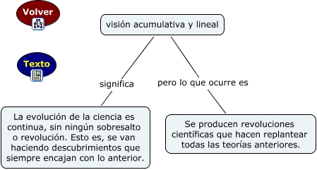 Este Cmap, tiene información relacionada con: visión acumulativa y lieneal, visión acumulativa y lineal pero lo que ocurre es Se producen revoluciones científicas que hacen replantear todas las teorías anteriores., visión acumulativa y lineal significa La evolución de la ciencia es continua, sin ningún sobresalto o revolución. Esto es, se van haciendo descubrimientos que siempre encajan con lo anterior.