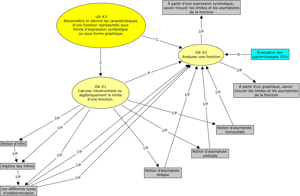 Cette carte conceptuelle, cree avec IHMC CmapTools, contient des informations liees a : UA3, Notion d'asymptote horizontale I/P OA #2 Analyser une fonction, Algèbre des infinis I/P Les différents types d'indétermination, OA #1 Calculer intuitivement ou algébriquement la limite d'une fonction. I/P Notion d'asymptote verticale, Les différents types d'indétermination I/P OA #2 Analyser une fonction, OA #1 Calculer intuitivement ou algébriquement la limite d'une fonction. I/P Algèbre des infinis, OA #1 Calculer intuitivement ou algébriquement la limite d'une fonction. I/P Les différents types d'indétermination, UA #3 Reconnaître et décrire les caractéristiques d'une fonction représentée sous forme d'expression symbolique ou sous forme graphique. C OA #2 Analyser une fonction, OA #2 Analyser une fonction I/P À partir d'une expression symbolique, savoir trouver les limites et les asymptotes de la fonction, Notion d'asymptote verticale I/P OA #2 Analyser une fonction, Les différents types d'indétermination I/P OA #2 Analyser une fonction, Évaluation des apprentissages 25% R OA #2 Analyser une fonction, Les différents types d'indétermination I/P OA #2 Analyser une fonction, OA #2 Analyser une fonction I/P À partir d'un graphique, savoir trouver les limites et les asymptotes de la fonction, Notion d'asymptote oblique I/P OA #2 Analyser une fonction, OA #1 Calculer intuitivement ou algébriquement la limite d'une fonction. P OA #2 Analyser une fonction, Notion d'infini I/P Algèbre des infinis, OA #1 Calculer intuitivement ou algébriquement la limite d'une fonction. I/P Notion d'asymptote horizontale, OA #1 Calculer intuitivement ou algébriquement la limite d'une fonction. I/P Notion d'asymptote oblique, OA #1 Calculer intuitivement ou algébriquement la limite d'une fonction. I/P Notion d'infini, UA #3 Reconnaître et décrire les caractéristiques d'une fonction représentée sous forme d'expression symbolique ou sous forme graphique. C OA #1 Calculer intuitivement ou algébriquement la limite d'une fonction.