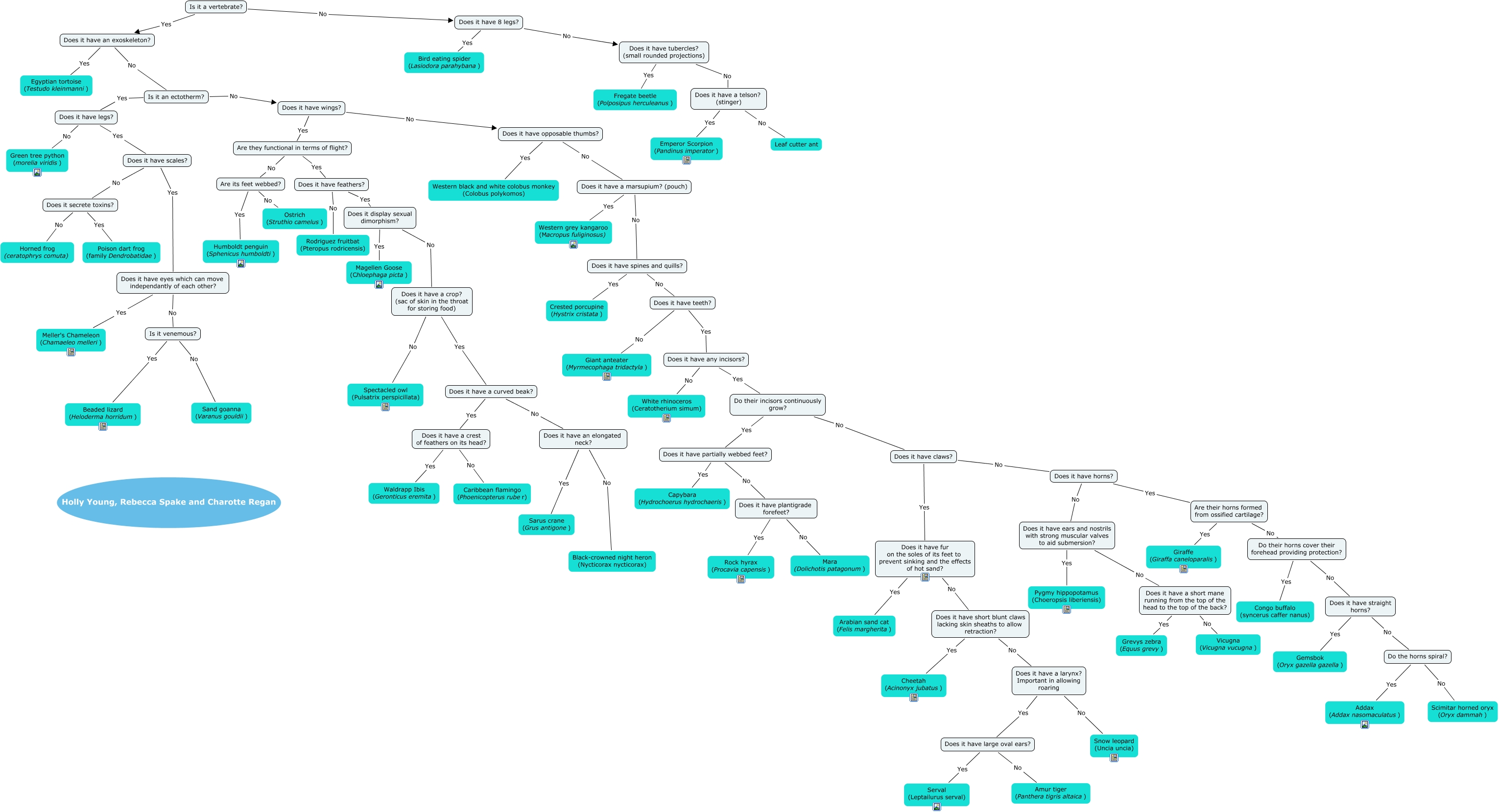 This Concept Map, created with IHMC CmapTools, has information related to: Marwell, Does it have scales? No Does it secrete toxins?, Does it have 8 legs? Yes Bird eating spider (Lasiodora parahybana), Does it have tubercles? (small rounded projections) No Does it have a telson? (stinger), Does it have legs? Yes Does it have scales?, Does it have legs? No Green tree python (morelia viridis), Does it have spines and quills? No Does it have teeth?, Does it have short blunt claws lacking skin sheaths to allow retraction? No Does it have a larynx? Important in allowing roaring, Does it have fur on the soles of its feet to prevent sinking and the effects of hot sand? Yes Arabian sand cat (Felis margherita), Are its feet webbed? No Ostrich (Struthio camelus), Does it have an elongated neck? Yes Sarus crane (Grus antigone), Are their horns formed from ossified cartilage? Yes Giraffe (Giraffa caneloparalis), Does it have a marsupium? (pouch) Yes Western grey kangaroo (Macropus fuliginosus), Does it have wings? No Does it have opposable thumbs?, Does it have claws? Yes Does it have fur on the soles of its feet to prevent sinking and the effects of hot sand?, Does it have fur on the soles of its feet to prevent sinking and the effects of hot sand? No Does it have short blunt claws lacking skin sheaths to allow retraction?, Does it have a telson? (stinger) Yes Emperor Scorpion (Pandinus imperator), Does it have any incisors? No White rhinoceros (Ceratotherium simum), Does it have a crest of feathers on its head? No Caribbean flamingo (Phoenicopterus ruber), Does it have short blunt claws lacking skin sheaths to allow retraction? Yes Cheetah (Acinonyx jubatus), Does it have any incisors? Yes Do their incisors continuously grow?