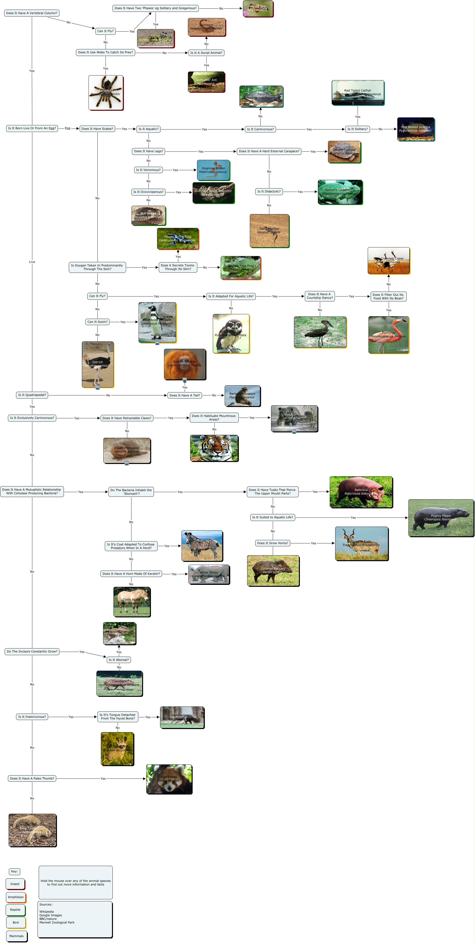 This Concept Map, created with IHMC CmapTools, has information related to: Marwell Zoo Practical, Does It Grow Horns? Yes Greater Kudu Tragelaphus strepsiceros, Does It Grow Horns? No Collared Peccary Pecari tajacu, Is It A Social Animal? Yes Leafcutter Ant Atta texana, Can It Fly? Yes Does It Have Two 'Phases' eg Solitary and Gregarious?, Does It Have A Mutualistic Relationship With Cellulase Producing Bacteria? Yes Do The Bacteria Inhabit the 'Stomach'?, Does It Have Legs? Yes Does It Have A Hard External Carapace?, Does It Have Two 'Phases' eg Solitary and Gregarious? Yes Locust Schistocerca gregaria, Does It Have Two 'Phases' eg Solitary and Gregarious? No Honey Bee Apis mellifera, Is It's Coat Adapted To Confuse Predators When In A Herd? No Does It Have A Horn Made Of Keratin?, Do The Bacteria Inhabit the 'Stomach'? No Is It's Coat Adapted To Confuse Predators When In A Herd?, Is It Exclusively Carnivorous? No Does It Have A Mutualistic Relationship With Cellulase Producing Bacteria?, Does It Have A Tail? No Barbary Macaque Macaca sylvanus, Does It Have Tusks That Pierce The Upper Mouth Parts? Yes Babirusa Babyrousa babyrussa, Is It Born Live Or From An Egg? Live Is It Quadrapedal?, Is It Aboreal? No Capybara Hydrochoerus hydrochaeris, Is It Ovoviviparous? No Bull Snake Pituophis catenifer, Is Oxygen Taken In Predominantly Through The Skin? Yes Does it Secrete Toxins Through Its Skin?, Does It Have A Courtship Dance? Yes Does It Filter Out Its Food With Its Beak?, Does It Have A Mutualistic Relationship With Cellulase Producing Bacteria? No Do The Incisors Constantly Grow?, Is It Didactylic? Yes Yemen's Chameleon Chamaeleo calyptratus