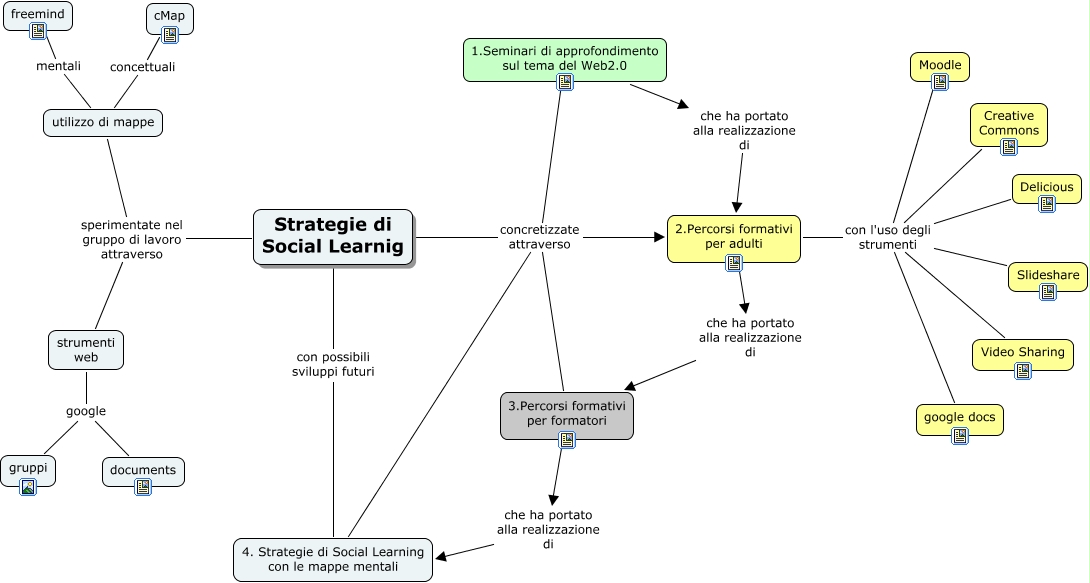 Questa Cmap, creata con IHMC CmapTools, contiene informazioni relative a: social learning strategies descriptionIT, 2.Percorsi formativi per adulti con l'uso degli strumenti Creative Commons, Strategie di Social Learnig concretizzate attraverso 2.Percorsi formativi per adulti, 3.Percorsi formativi per formatori che ha portato alla realizzazione di 4. Strategie di Social Learning con le mappe mentali, Strategie di Social Learnig con possibili sviluppi futuri 4. Strategie di Social Learning con le mappe mentali, Strategie di Social Learnig sperimentate nel gruppo di lavoro attraverso utilizzo di mappe, Strategie di Social Learnig concretizzate attraverso 1.Seminari di approfondimento sul tema del Web2.0, utilizzo di mappe mentali freemind, Strategie di Social Learnig concretizzate attraverso 3.Percorsi formativi per formatori, 1.Seminari di approfondimento sul tema del Web2.0 che ha portato alla realizzazione di 2.Percorsi formativi per adulti, strumenti web google gruppi, utilizzo di mappe concettuali cMap, 2.Percorsi formativi per adulti con l'uso degli strumenti google docs, strumenti web google documents, 2.Percorsi formativi per adulti con l'uso degli strumenti Video Sharing, 2.Percorsi formativi per adulti che ha portato alla realizzazione di 3.Percorsi formativi per formatori, 2.Percorsi formativi per adulti con l'uso degli strumenti Moodle, Strategie di Social Learnig concretizzate attraverso 4. Strategie di Social Learning con le mappe mentali, 2.Percorsi formativi per adulti con l'uso degli strumenti Slideshare, Strategie di Social Learnig sperimentate nel gruppo di lavoro attraverso strumenti web, 2.Percorsi formativi per adulti con l'uso degli strumenti Delicious