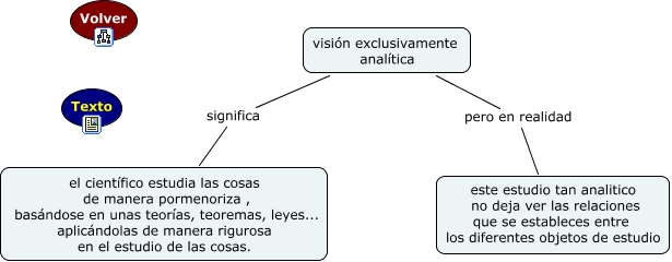 Este Cmap, tiene información relacionada con: visión exclusivamente analítica, visión exclusivamente analítica pero en realidad este estudio tan analitico no deja ver las relaciones que se estableces entre los diferentes objetos de estudio, visión exclusivamente analítica significa el científico estudia las cosas de manera pormenoriza , basándose en unas teorías, teoremas, leyes... aplicándolas de manera rigurosa en el estudio de las cosas.