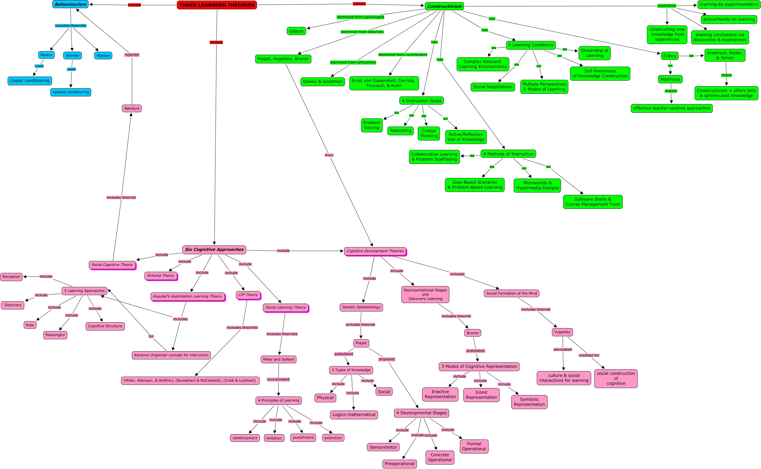 This Concept Map, created with IHMC CmapTools, has information related to: Draft 2, Social Formation of the Mind includes theorist Vygotsky, 4 Instruction Goals ex Critical Thinking, Six Cognitive Approaches include Social Learning Theory, Six Cognitive Approaches include Cognitive Development Theories, Critics ex Anderson, Reder, & Simon, 3 Types of Knowledge include Physical, 4 Instruction Goals ex Problem Solving, Piaget proposed 4 Developmental Stages, 4 Instruction Goals ex Active/Reflective Use of Knowledge, Constructivism postulates drawing conclusions via discoveries & experiences, 4 Developmental Stages include Preoperational, 5 Learning Approaches include Meaningful, Piaget postulated 3 Types of Knowledge, Vygotsky advocated culture & social interactions for learning, 4 Developmental Stages include Formal Operational, Cognitive Development Theories include Genetic Epistemology, 4 Methods of Instruction ex Microworlds & Hypermedia Designs, Constructivism stemmed from philophers Dewey & Goodman, Social Cognitive Theory includes theorist Bandura, 3 Types of Knowledge include Logico-mathematical