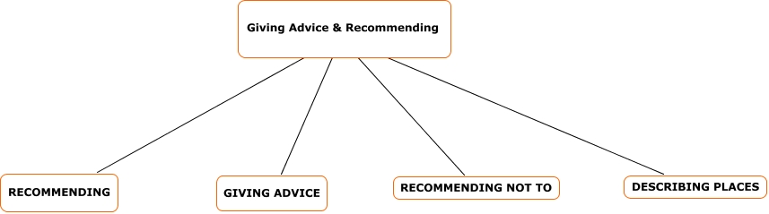 This Concept Map, created with IHMC CmapTools, has information related to: Giving Advice_Recommending_TREE, Giving Advice & Recommending ???? DESCRIBING PLACES, Giving Advice & Recommending ???? RECOMMENDING NOT TO, Giving Advice & Recommending ???? RECOMMENDING, Giving Advice & Recommending ???? GIVING ADVICE
