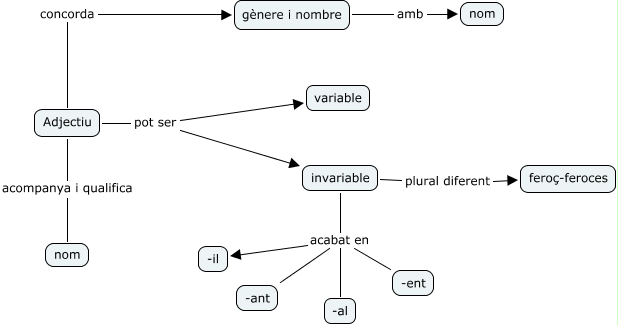 Este Cmap, tiene información relacionada con: L'adjectiu, invariable acabat en -ant, Adjectiu concorda gènere i nombre, invariable acabat en -il, gènere i nombre amb nom, invariable plural diferent feroç-feroces, Adjectiu pot ser invariable, Adjectiu acompanya i qualifica nom, invariable acabat en -al, invariable acabat en -ent, Adjectiu pot ser variable
