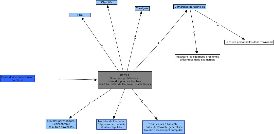 Cette carte conceptuelle, cree avec IHMC CmapTools, contient des informations liees a : RESS 1, RESS 1 Situations problèmes à résoudre pour les troubles liés à l'anxiété, de l'humeur, psychotiques C Démarches personnelles, Démarches personnelles C Lectures personnelles dans Townsend, Cours donné entièrement en classe R RESS 1 Situations problèmes à résoudre pour les troubles liés à l'anxiété, de l'humeur, psychotiques, RESS 1 Situations problèmes à résoudre pour les troubles liés à l'anxiété, de l'humeur, psychotiques C Objectifs, Démarches personnelles C Résoudre les situations problèmes présentées dans Examstudio, RESS 1 Situations problèmes à résoudre pour les troubles liés à l'anxiété, de l'humeur, psychotiques C Titre, RESS 1 Situations problèmes à résoudre pour les troubles liés à l'anxiété, de l'humeur, psychotiques C Consignes, RESS 1 Situations problèmes à résoudre pour les troubles liés à l'anxiété, de l'humeur, psychotiques C Troubles psychotiques: Schizophrénie et autres psychoses, RESS 1 Situations problèmes à résoudre pour les troubles liés à l'anxiété, de l'humeur, psychotiques C Troubles liés à l'anxiété: Trouble de l'anxiété généralisée, trouble obsessionnel-compulsif