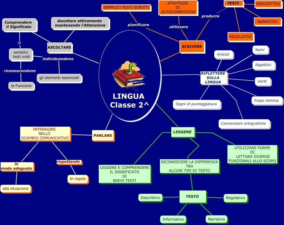 Questa Cmap, creata con IHMC CmapTools, contiene informazioni relative a: Lingua_2, LINGUA Classe 2^ RIFLETTERE SULLA LINGUA Aggettivi, UTILIZZARE FORME DI LETTURA DIVERSE FUNZIONALI ALLO SCOPO LEGGERE LINGUA Classe 2^, Regolativo TESTO RICONOSCERE LA DIFFERENZA TRA ALCUNI TIPI DI TESTO, LINGUA Classe 2^ ???? SCRIVERE, SCRIVERE produrre TESTI, LINGUA Classe 2^ RIFLETTERE SULLA LINGUA Convenzioni ortografiche, SCRIVERE pianificare SEMPLICI TESTI SCRITTI, TESTI ???? DESCRITTIVI, SCRIVERE utilizzare STRATEGIE DI AUTOCORREZIONE, LINGUA Classe 2^ RIFLETTERE SULLA LINGUA Verbi, LINGUA Classe 2^ RIFLETTERE SULLA LINGUA Articoli, Comprendere il Significato di semplici testi orali, Descrittivo TESTO RICONOSCERE LA DIFFERENZA TRA ALCUNI TIPI DI TESTO, LINGUA Classe 2^ PARLARE INTERAGIRE NELLO SCAMBIO COMUNICATIVO, LINGUA Classe 2^ ASCOLTARE Ascoltare attivamente mantenendo l'Attenzione, semplici testi orali individuandone gli elementi essenziali, INTERAGIRE NELLO SCAMBIO COMUNICATIVO rispettando le regole, LINGUA Classe 2^ ASCOLTARE Comprendere il Significato, TESTI ???? REGOLATIVI, Narrativo TESTO RICONOSCERE LA DIFFERENZA TRA ALCUNI TIPI DI TESTO