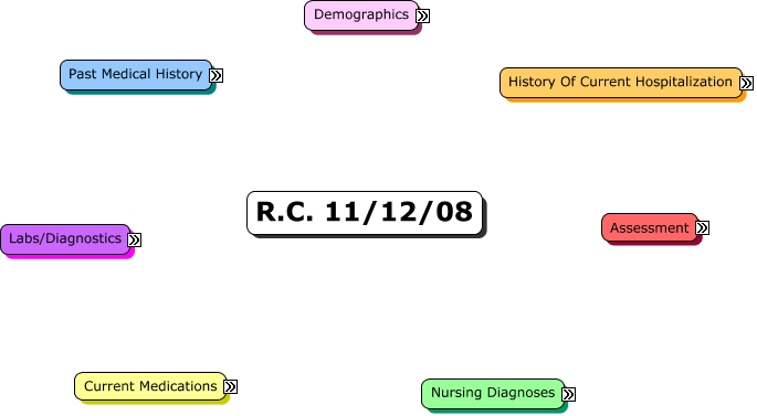 This Concept Map, created with IHMC CmapTools, has information related to: 11-12 CMAP Caddle, Simvastatin Pertinent Lab Values LFT's and baseline FLP, Furosemide Pertinent Lab Values Last K value=4.0 Client manages potassium levels at home with supplement., Respiratory 16:00 Lung sounds clear all lobes, bilaterally. Chest expansion is symmetrical., Potassium Chloride Reason for Recieving Potassium supplement in conjunction with furosemide therapy., Potassium Chloride Brand Name K-Dur, Gabapentin Brand Name Neurontin, Furosemide Brand Name Lasix, Aspirin Classification NSAID, Nonopiod analgesic, antipyretic, antiplatelet, Salicylate, Metoprolol Classification Antihypertensive, antianginal, B1-Blocker, Imbalanced nutrition, more than body requirements related to excessive intake as evidenced by currently being overweight. Intervention Calculate client's caloric needs based on physical factors and activity level., Furosemide Reason for Recieving Hypertension, Simvastatin Physician's Order (client's exact doage still being dtermined) PO daily, Risk for decreased cardiac output related to recurrent coronary vessel occlusion. Intervention Discuss weight-loss program (diet and exercise) with the client and significant other to promote wellness and decrease risk factors., Integumentary 16:00 22 gauge primary line in right hand. Normal saline running at 100ml/hr. Line is patent, no redness, swelling, or other signs of infection. Appropriately moist and warm to touch, mobile with adequate turgor. No signs of breakdown on sacrum, back or heels. Sheath site is soft, no sign of hematoma., Readiness for enhanced knowledge related to coronary artery disease and treatment as evidenced by client's expressed interest in learning in the form of questions. Intervention Determine client's current knowledge level and preferred learning style., Gabapentin Classification Anticonvulsant, Gen. Chem. 10/24 Ca=9.2 Gluc=123 BUN=13 Cr=.88 Na=138 K=4.0 Cl=101 CO2=24 GFRᡴ, Risk for decreased cardiac output related to recurrent coronary vessel occlusion. Intervention Educate the client thoroughly on medication regimen designed to prevent thrombosis on stent including clopidogrel and aspirin., Gabapentin Reason for Recieving Unsure, client does not experience seizures, migranes, bipolar disorder, or neuropathic pain. Stated after this bottle of pills was gone, he would no longer need this medication., GI/GU 16:00 Abdomen is soft, round, nontender, no distention. Bowel sounds are normoactive x4.Client voids independently and reports no difficulties.