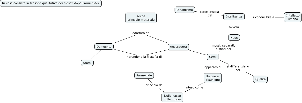 Questa Cmap, creata con IHMC CmapTools, contiene informazioni relative a: Riboni&Villa, Anassagora Semi, Archè principio materiale adottato da Anassagora, Democrito riprendono la filosofia di Parmenide, Parmenide principio del Nulla nasce nulla muore, Nous ovvero Intelligenza, Nulla nasce nulla muore inteso come Unione e disunione, Semi si differenziano per Qualità, Intelligenza caratteristica del Dinamismo, Anassagora riprendono la filosofia di Parmenide, Semi mossi, separati, distinti dal Nous, Democrito Atomi, Intelligenza riconducibile a Intelletto umano, Unione e disunione applicato ai Semi, Archè principio materiale adottato da Democrito