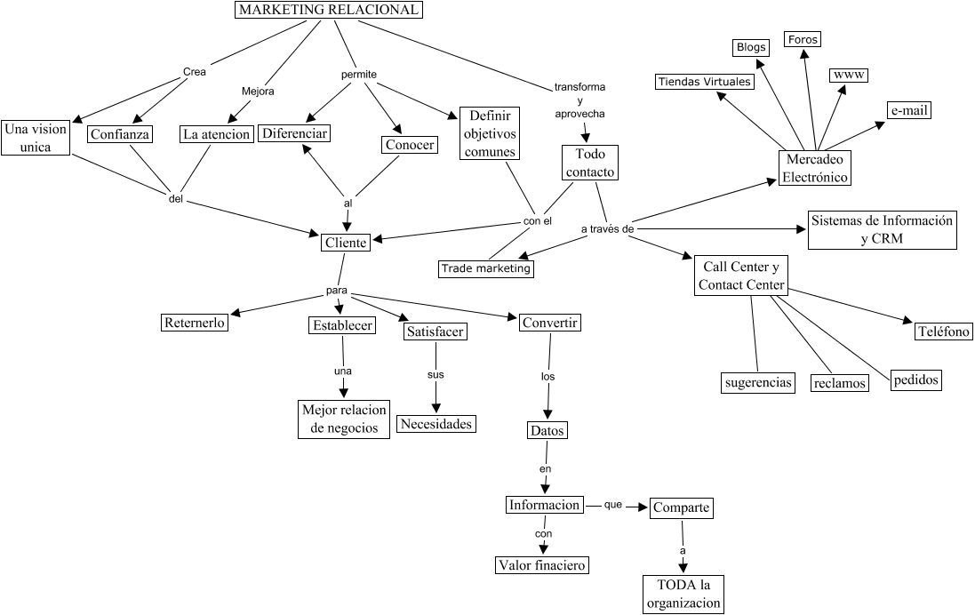 Este Cmap, tiene información relacionada con: CRM, Mercadeo Electrónico ???? Blogs, Informacion con Valor finaciero, Establecer una Mejor relacion de negocios, Mercadeo Electrónico ???? Tiendas Virtuales, Todo contacto con el Trade marketing, Mercadeo Electrónico ???? Foros, Conocer al Diferenciar, MARKETING RELACIONAL permite Definir objetivos comunes, MARKETING RELACIONAL Crea Confianza, Call Center y Contact Center ???? sugerencias, Definir objetivos comunes con el Cliente, Call Center y Contact Center pedidos, Conocer al Cliente, Todo contacto a través de Call Center y Contact Center, Datos en Informacion, Satisfacer sus Necesidades, Call Center y Contact Center ???? Teléfono, Call Center y Contact Center reclamos, MARKETING RELACIONAL permite Diferenciar, Mercadeo Electrónico e-mail