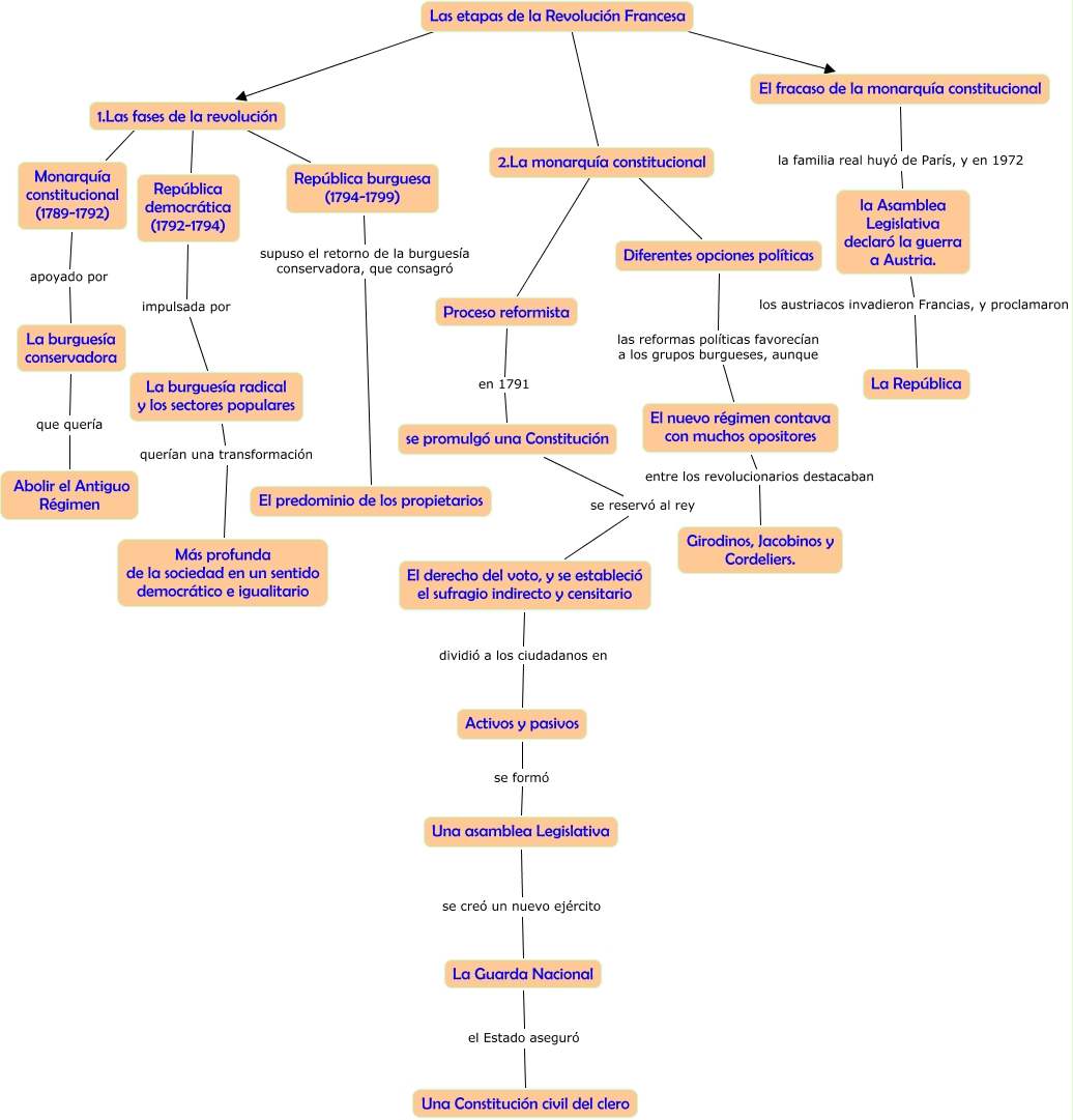 Este Cmap, tiene información relacionada con: Las etapas de la Revolución francesa. Luis Yeste Ortega nº31 4ºA, Activos y pasivos se formó Una asamblea Legislativa, 2.La monarquía constitucional ???? Proceso reformista, Proceso reformista en 1791 se promulgó una Constitución, Las etapas de la Revolución Francesa ???? 1.Las fases de la revolución, El fracaso de la monarquía constitucional la familia real huyó de París, y en 1972 la Asamblea Legislativa declaró la guerra a Austria., Las etapas de la Revolución Francesa ???? 2.La monarquía constitucional, 2.La monarquía constitucional ???? Diferentes opciones políticas, la Asamblea Legislativa declaró la guerra a Austria. los austriacos invadieron Francias, y proclamaron La República, 1.Las fases de la revolución ???? República democrática (1792-1794), Las etapas de la Revolución Francesa ???? El fracaso de la monarquía constitucional, Una asamblea Legislativa se creó un nuevo ejército La Guarda Nacional, La Guarda Nacional el Estado aseguró Una Constitución civil del clero, 1.Las fases de la revolución ???? República burguesa (1794-1799), Diferentes opciones políticas las reformas políticas favorecían a los grupos burgueses, aunque El nuevo régimen contava con muchos opositores, Monarquía constitucional (1789-1792) apoyado por La burguesía conservadora, República burguesa (1794-1799) supuso el retorno de la burguesía conservadora, que consagró El predominio de los propietarios, se promulgó una Constitución se reservó al rey El derecho del voto, y se estableció el sufragio indirecto y censitario, República democrática (1792-1794) impulsada por La burguesía radical y los sectores populares, La burguesía conservadora que quería Abolir el Antiguo Régimen, El nuevo régimen contava con muchos opositores entre los revolucionarios destacaban Girodinos, Jacobinos y Cordeliers.