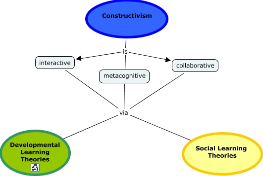 This Concept Map, created with IHMC CmapTools, has information related to: Constructivism, interactive via Developmental Learning Theories, collaborative via Developmental Learning Theories, Constructivism is metacognitive, collaborative via Social Learning Theories, interactive via Social Learning Theories, metacognitive via Social Learning Theories, Constructivism is collaborative, Constructivism is interactive, metacognitive via Developmental Learning Theories