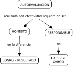 Este Cmap, tiene información relacionada con: Autoevaluación síntesis, RESPONSABLE de HACERSE CARGO, AUTOEVALUACIÓN realizada con efectividad requiere de ser HONESTO, HONESTO en la diferencia LOGRO - RESULTADO, AUTOEVALUACIÓN realizada con efectividad requiere de ser RESPONSABLE