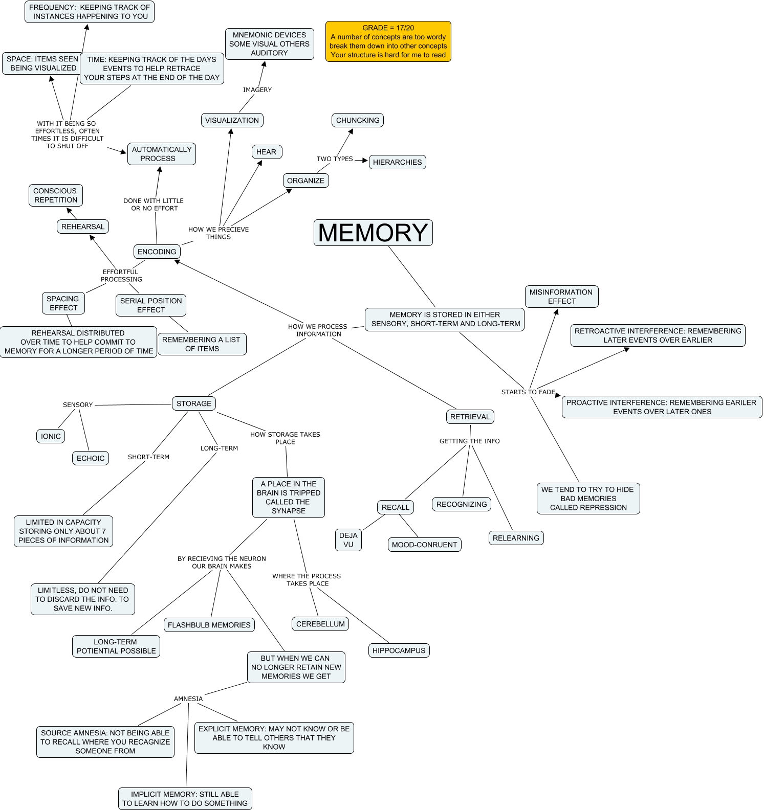 Tiffany DeVaughn ch 8, ENCODING DONE WITH LITTLE OR NO EFFORT AUTOMATICALLY PROCESS, A PLACE IN THE BRAIN IS TRIPPED CALLED THE SYNAPSE BY RECIEVING THE NEURON OUR BRAIN MAKES FLASHBULB MEMORIES, STORAGE SENSORY ECHOIC, TIME: KEEPING TRACK OF THE DAYS EVENTS TO HELP RETRACE YOUR STEPS AT THE END OF THE DAY WITH IT BEING SO EFFORTLESS, OFTEN TIMES IT IS DIFFICULT TO SHUT OFF AUTOMATICALLY PROCESS, ORGANIZE TWO TYPES HIERARCHIES, MEMORY IS STORED IN EITHER SENSORY, SHORT-TERM AND LONG-TERM HOW WE PROCESS INFORMATION STORAGE, A PLACE IN THE BRAIN IS TRIPPED CALLED THE SYNAPSE BY RECIEVING THE NEURON OUR BRAIN MAKES BUT WHEN WE CAN NO LONGER RETAIN NEW MEMORIES WE GET, VISUALIZATION IMAGERY MNEMONIC DEVICES SOME VISUAL OTHERS AUDITORY, RECALL ???? MOOD-CONRUENT, MEMORY IS STORED IN EITHER SENSORY, SHORT-TERM AND LONG-TERM ???? MEMORY