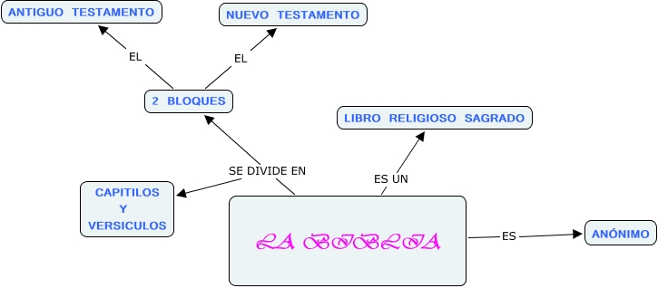 Este Cmap, tiene información relacionada con: BIBLIA (YARA SARA Y VICTORIA), LA BIBLIA ES UN LIBRO RELIGIOSO SAGRADO, LA BIBLIA SE DIVIDE EN 2 BLOQUES, 2 BLOQUES EL NUEVO TESTAMENTO, 2 BLOQUES EL ANTIGUO TESTAMENTO, LA BIBLIA SE DIVIDE EN CAPITILOS Y VERSICULOS, LA BIBLIA ES ANÓNIMO