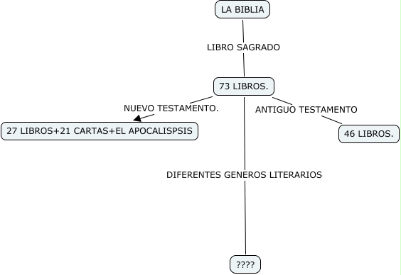 Este Cmap, tiene información relacionada con: BIBLIA (ELISA Y VIRGINIA), 73 LIBROS. NUEVO TESTAMENTO. 27 LIBROS+21 CARTAS+EL APOCALISPSIS, LA BIBLIA LIBRO SAGRADO 73 LIBROS., 73 LIBROS. ANTIGUO TESTAMENTO 46 LIBROS., 73 LIBROS. DIFERENTES GENEROS LITERARIOS ????