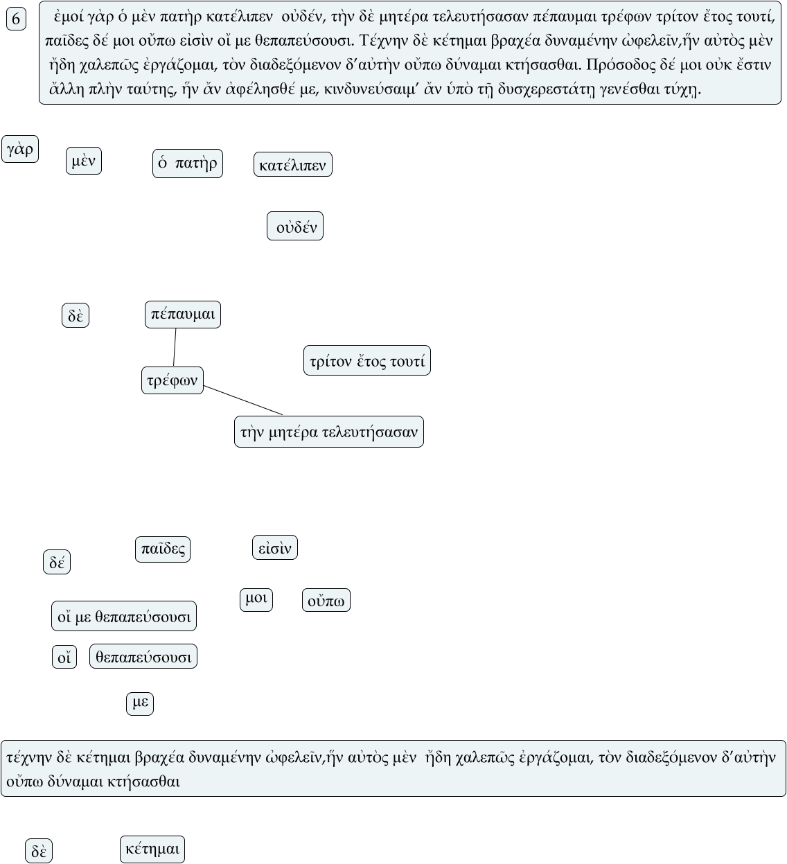 Este Cmap, tiene información relacionada con: frag.6, τρέφων ???? πέπαυμαι, τὴν μητέρα τελευτήσασαν ???? τρέφων
