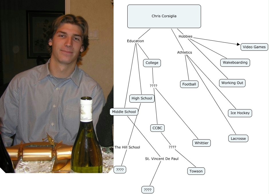 This Concept Map, created with IHMC CmapTools, has information related to: chris corsiglia, High School The Hill School ????, Chris Corsiglia Athletics Lacrosse, CCBC ???? Towson, College ???? CCBC, Chris Corsiglia Education Middle School, Chris Corsiglia Education College, Chris Corsiglia Hobbies Working Out, College ???? Whittier, Chris Corsiglia Hobbies Wakeboarding, Chris Corsiglia Education High School, Chris Corsiglia Athletics Football, Chris Corsiglia Athletics Ice Hockey, Chris Corsiglia Hobbies Video Games, Middle School St. Vincent De Paul ????