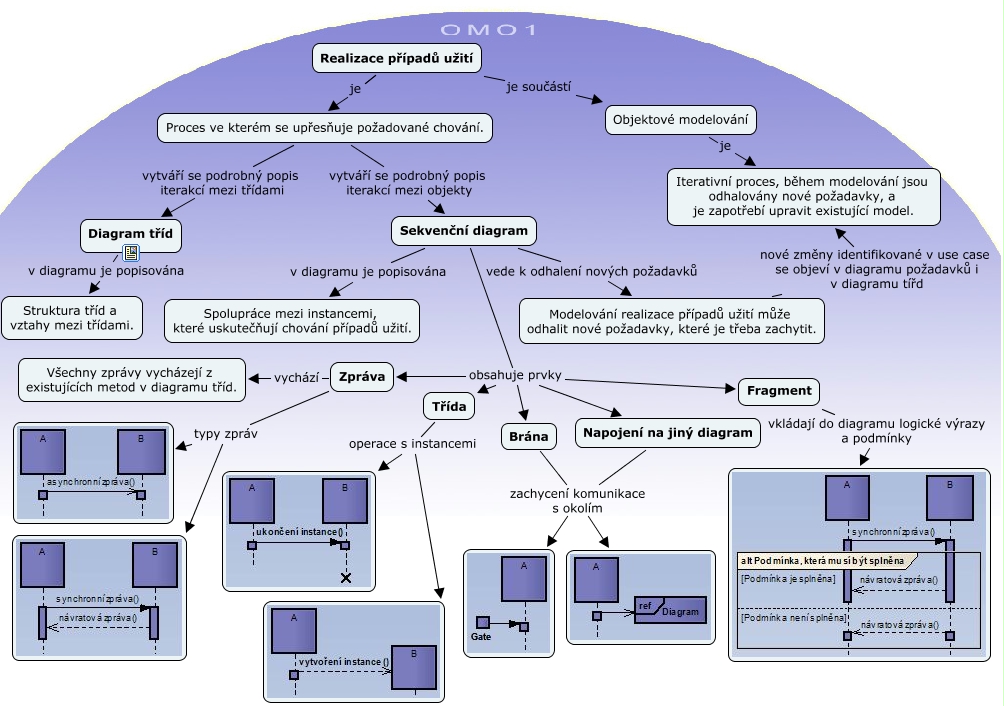 Tato Cmapa, vytvořená pomocí CmapTools, obsahuje informaci související s: Realizace_pripadu_uziti, Proces ve kterém se upřesňuje požadované chování. vytváří se podrobný popis iterakcí mezi třídami Diagram tříd, Třída operace s instancemi, Sekvenční diagram obsahuje prvky Fragment, Napojení na jiný diagram zachycení komunikace s okolím, Brána zachycení komunikace s okolím, Realizace případů užití je Proces ve kterém se upřesňuje požadované chování., Objektové modelování je Iterativní proces, během modelování jsou odhalovány nové požadavky, a je zapotřebí upravit existující model., Fragment vkládají do diagramu logické výrazy a podmínky, Sekvenční diagram obsahuje prvky Zpráva, Sekvenční diagram obsahuje prvky Napojení na jiný diagram, Sekvenční diagram obsahuje prvky Brána, Zpráva vychází Všechny zprávy vycházejí z existujících metod v diagramu tříd., Třída operace s instancemi, Realizace případů užití je součástí Objektové modelování, Sekvenční diagram obsahuje prvky Třída, Sekvenční diagram v diagramu je popisována Spolupráce mezi instancemi, které uskutečňují chování případů užití., Sekvenční diagram vede k odhalení nových požadavků Modelování realizace případů užití může odhalit nové požadavky, které je třeba zachytit., Proces ve kterém se upřesňuje požadované chování. vytváří se podrobný popis iterakcí mezi objekty Sekvenční diagram, Napojení na jiný diagram zachycení komunikace s okolím, Zpráva typy zpráv