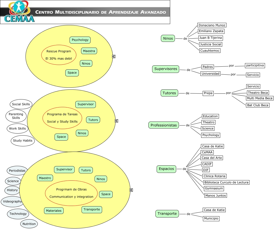 This Concept Map, created with IHMC CmapTools, has information related to: Rio Bravo Tutoring Program, Tutores de Prepa, Espacios de Gymnasium, Supervisores de Padres, Professionistas de Science, Ninos de Emiliano Zapata, Espacios de Manos Juntos, Ninos de Juan B Tijerina, Espacios de Biblioteca Curculo de Lectura, Espacios de DIF, Ninos de Justicia Social, Ninos de Cuauhtemoc, Prepa por Theatro Beca, Professionistas de Education, Espacios de Casa de Katie, Espacios de CADIF, Supervisores de Universidad, Prepa por Bat Club Beca, Transporte de Casa de Katie, Prepa por Servicio, Espacios de Clinica Rotaria