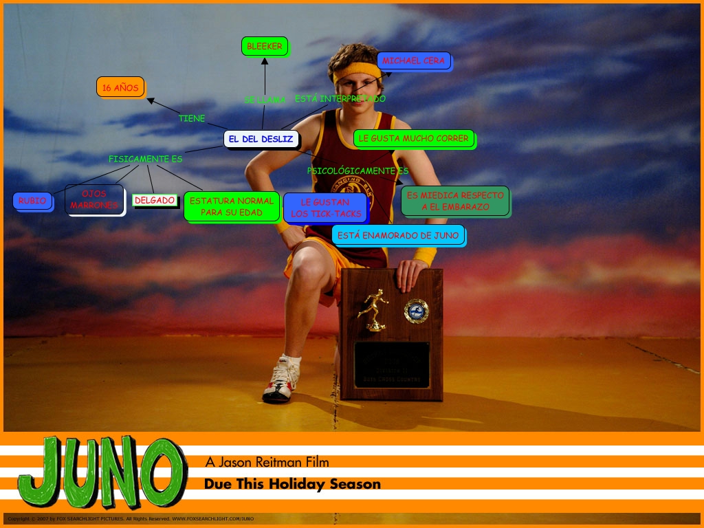 Este Cmap, tiene información relacionada con: EL DEL DESLIZ(JUNO), EL DEL DESLIZ TIENE 16 AÑOS, EL DEL DESLIZ FISICAMENTE ES OJOS MARRONES, EL DEL DESLIZ PSICOLÓGICAMENTE ES LE GUSTA MUCHO CORRER, EL DEL DESLIZ PSICOLÓGICAMENTE ES ES MIEDICA RESPECTO A EL EMBARAZO, EL DEL DESLIZ FISICAMENTE ES RUBIO, EL DEL DESLIZ FISICAMENTE ES DELGADO, EL DEL DESLIZ SE LLAMA BLEEKER, EL DEL DESLIZ PSICOLÓGICAMENTE ES LE GUSTAN LOS TICK-TACKS, EL DEL DESLIZ PSICOLÓGICAMENTE ES ESTÁ ENAMORADO DE JUNO, EL DEL DESLIZ ESTÁ INTERPRETADO MICHAEL CERA, EL DEL DESLIZ FISICAMENTE ES ESTATURA NORMAL PARA SU EDAD