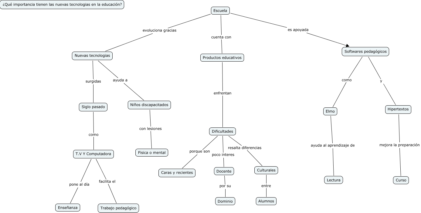 Este Cmap, tiene información relacionada con: mapa 9, Docente por su Dominio, Escuela es apoyada Softwares pedagógicos, Siglo pasado como T.V Y Computadora, Nuevas tecnologias ayuda a Niños discapacitados, Elmo ayuda al aprendizaje de Lectura, Niños discapacitados con lesiones Fisica o mental, Escuela cuenta con Productos educativos, Softwares pedagógicos como Elmo, T.V Y Computadora facilita el Trabajo pedagógico, Dificultades resalta diferencias Culturales, Hipertextos mejora la preparación Curso, Escuela evoluciona gracias Nuevas tecnologias, Dificultades poco interes Docente, Nuevas tecnologias surgidas Siglo pasado, Dificultades porque son Caras y recientes, Softwares pedagógicos y Hipertextos, Productos educativos enfrentan Dificultades, T.V Y Computadora pone al día Enseñanza, Culturales entre Alumnos