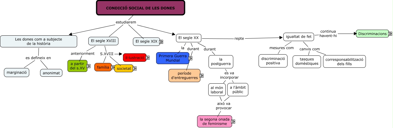 Este Cmap, tiene información relacionada con: Tema 9. Claudia Cortés Cebrián, discriminacions en responsabilitat laboral, igualtat van donar lloc a clubs de dones de la noblesa, discriminacions en paper tradicional de la dona, països subdesenvolupats representen 65% analfabetes, llibertat van donar lloc a intervenció en la revolta, la postguerra es va incorporar al món laboral, CONDICIÓ SOCIAL DE LES DONES estudiarem El segle XVIII, en protestes incloent-hi el resorgiment del feminisme, les injustícies i desigualtats això va produir una crisi de valors, CONDICIÓ SOCIAL DE LES DONES estudiarem El segle XX, a les dones de dret a la propietat i a la pàtria potestat, discriminacions als països subdesenvolupats, querelle des femmes reivindica accès a la cultura, medicina definien com subjectes al seu sistema reproductiu, periode d'entreguerres es van accentuar el prototip de dona, sistema domèstic de producció dones manufactures textils, igualtat de fet mesures com discriminació positiva, El segle XX repte igualtat de fet, Les dones com a subjecte de la història es defineix en marginació, El segle XX la Primera Guerra Mundial