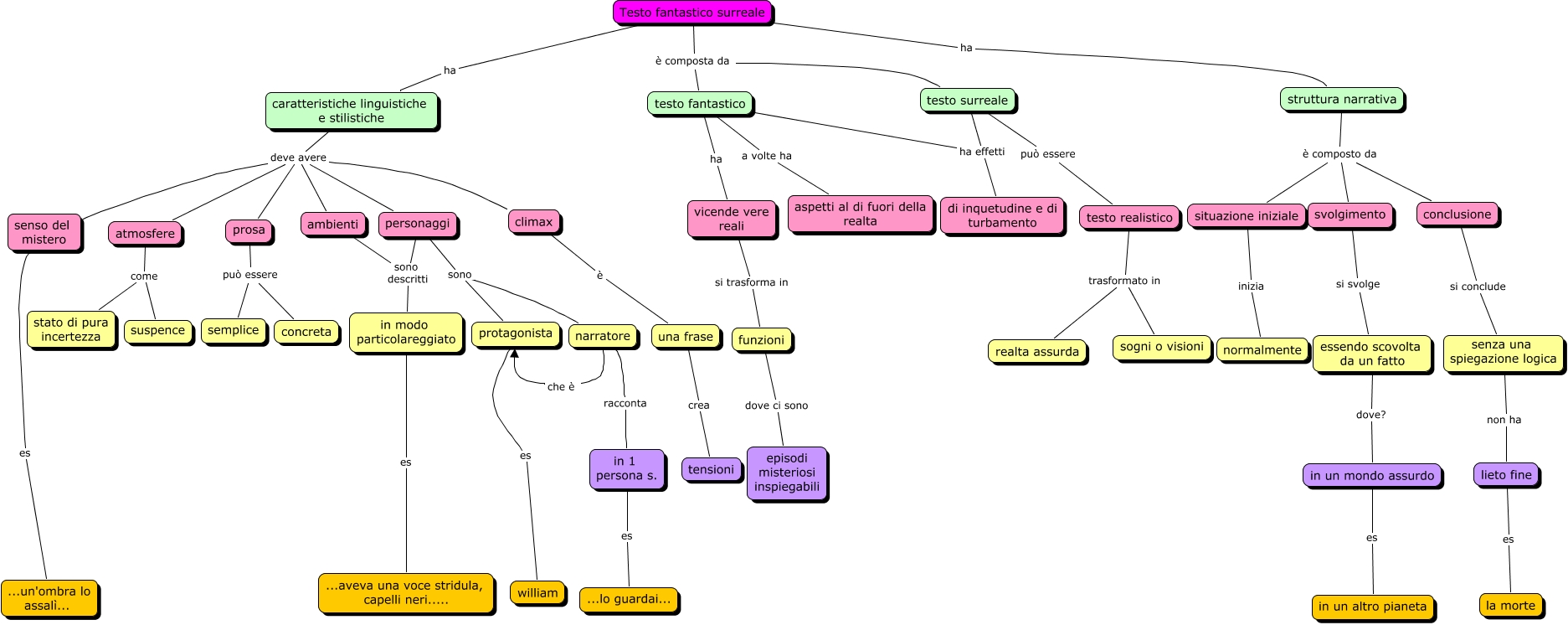 Questa Cmap, creata con IHMC CmapTools, contiene informazioni relative a: testo fantastico surreale, personaggi sono protagonista, caratteristiche linguistiche e stilistiche deve avere senso del mistero, Testo fantastico surreale ha caratteristiche linguistiche e stilistiche, situazione iniziale inizia normalmente, narratore che è protagonista, testo fantastico a volte ha aspetti al di fuori della realta, narratore racconta in 1 persona s., testo fantastico ha vicende vere reali, atmosfere come suspence, funzioni dove ci sono episodi misteriosi inspiegabili, in un mondo assurdo es in un altro pianeta, testo realistico trasformato in realta assurda, essendo scovolta da un fatto dove? in un mondo assurdo, senso del mistero es ...un'ombra lo assalì..., testo surreale può essere testo realistico, struttura narrativa è composto da conclusione, svolgimento si svolge essendo scovolta da un fatto, conclusione si conclude senza una spiegazione logica, atmosfere come stato di pura incertezza, caratteristiche linguistiche e stilistiche deve avere prosa