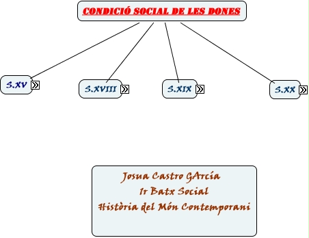 Este Cmap, tiene información relacionada con: Condició Social de les DOnes, Reptes pel futur Com Augmet de dones en càrrecs imporantants, Segona onada de feminisme Objectius Denuncair la desigualtat jurídica, Societat Influenciada per Les Idees de l'Il·lustració, Segona onada de feminisme Objectius Qüestionar la divisió de papers entre homes i dones, Condició Social de les Dones S.XVIII Treball, Ideologia Dividida en Cultural, Condició Social de les Dones S.XIX Ideologia, Condició Social de les Dones S.XIX Sistema Fabril, Soltera Obligada A ingresar al món religiòs, Casada Era Manera Natural de trobar lloc a la societat, Reptes pel futur Pretenció (al món islàmic)Aconseguir drets que ja s'han aconseguit al món occidental, Condició Social de les Dones S.XX Primera Guerra Mundial, Manufactures Tèxtils En el que Les dones eren peça clau, Qúestionar l'estructura tradicianl de família Aconsegueix Millores,però insuficients, Al canvi de mentalitat Culmina en Segona onada de feminisme, Vidua Disposava de LLibertat e Independència, Qüestionar la divisió de papers entre homes i dones Aconsegueix Millores,però insuficients, Manufactures Tèxtils En el que Era el principal font d'ingressos, Estat Civil segons estiguès Soltera, Segona onada de feminisme Objectius Decisió sobre el propi cos