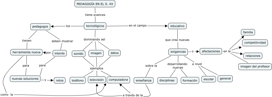 Este Cmap, tiene información relacionada con: PEDAGOGÍA DEL S. XX(Lectura 9), educativo que crea nuevas exigencias, sonido ejemplos computadora, exigencias sobre la enseñanza, datos ejemplos teléfono, afectaciones en la relaciones, sonido ejemplos televisión, exigencias desarrollando nuevas formación, interés por herramienta nueva, imagen ejemplos computadora, datos ejemplos televisión, afectaciones en la competitividad, herramienta nueva para nuevas soluciones, enseñanza a través de la computadora, tecnológicos dominando así sonido, PEDAGOGÍA EN EL S. XX tiene avances tecnológicos, tecnológicos en el campo educativo, exigencias desarrollando nuevas disciplinas, tecnológicos los pedagogos, exigencias a nivel escolar, herramienta nueva como la computadora