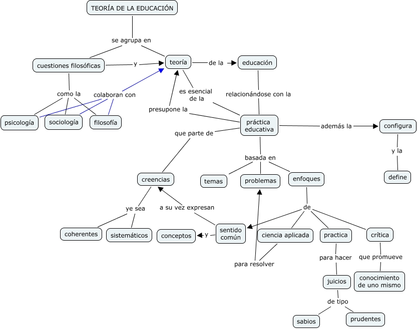 Este Cmap, tiene información relacionada con: TEORÍA DE LA EDUCACIÓN (Lectura 7), TEORÍA DE LA EDUCACIÓN se agrupa en teoría, filosofía colaboran con teoría, sentido común a su vez expresan creencias, crítica que promueve conocimiento de uno mismo, teoría es esencial de la práctica educativa, enfoques de crítica, sociología colaboran con teoría, enfoques de practica, enfoques de ciencia aplicada, práctica educativa que parte de creencias, ciencia aplicada para resolver problemas, sentido común y conceptos, cuestiones filosóficas como la filosofía, práctica educativa basada en temas, cuestiones filosóficas como la psicología, práctica educativa basada en enfoques, psicología colaboran con teoría, juicios de tipo sabios, creencias ye sea sistemáticos, cuestiones filosóficas como la sociología