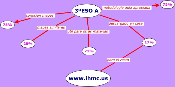 Este Cmap, tiene información relacionada con: 3ºa, 3ºESO A descargado en casa 17%, 3ºESO A mapas similares 28%, 3ºESO A util para otras materias 71%, 3ºESO A conocían mapas 75%, 17% para el resto www.ihmc.us, 3ºESO A metodología aula apropiada 75%