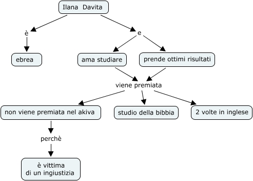 Questa Cmap, creata con IHMC CmapTools, contiene informazioni relative a: Ritratti di Studenti, ama studiare viene premiata 2 volte in inglese, ama studiare viene premiata studio della bibbia, prende ottimi risultati viene premiata studio della bibbia, Ilana Davita e prende ottimi risultati, non viene premiata nel akiva perchè è vittima di un ingiustizia, prende ottimi risultati viene premiata non viene premiata nel akiva, Ilana Davita e ama studiare, Ilana Davita è ebrea, prende ottimi risultati viene premiata 2 volte in inglese, ama studiare viene premiata non viene premiata nel akiva