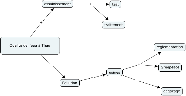 This Concept Map, created with IHMC CmapTools, has information related to: My_mind_map, usines + Greepeace, Pollution - usines, usines - degazage, assainissement + traitement, usines + reglementation, Qualité de l'eau à Thau + assainissement, assainissement + test, Qualité de l'eau à Thau - Pollution