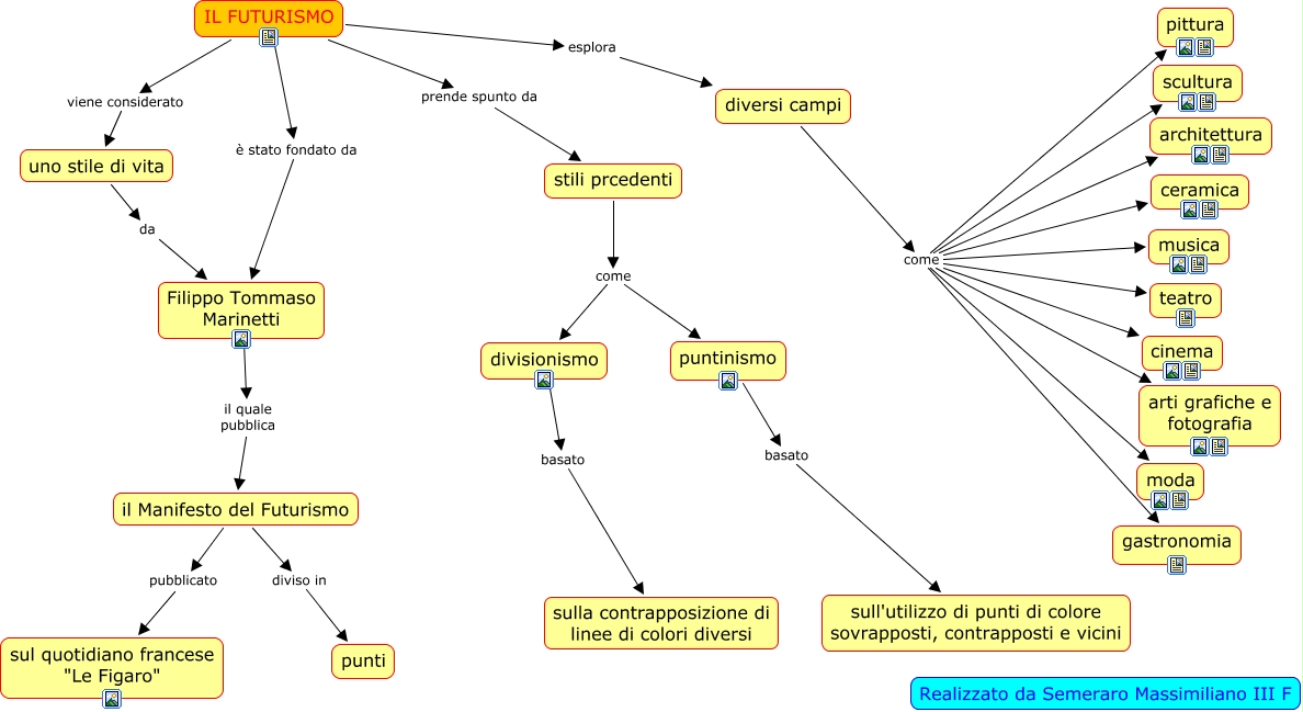 Questa Cmap, creata con IHMC CmapTools, contiene informazioni relative a: futurismo Massi, diversi campi come scultura, diversi campi come gastronomia, diversi campi come arti grafiche e fotografia, Filippo Tommaso Marinetti il quale pubblica il Manifesto del Futurismo, stili prcedenti come divisionismo, puntinismo basato sull'utilizzo di punti di colore sovrapposti, contrapposti e vicini, IL FUTURISMO è stato fondato da Filippo Tommaso Marinetti, diversi campi come moda, uno stile di vita da Filippo Tommaso Marinetti, stili prcedenti come puntinismo, IL FUTURISMO esplora diversi campi, diversi campi come cinema, diversi campi come teatro, diversi campi come pittura, diversi campi come musica, diversi campi come ceramica, il Manifesto del Futurismo pubblicato sul quotidiano francese "Le Figaro", IL FUTURISMO prende spunto da stili prcedenti, IL FUTURISMO viene considerato uno stile di vita, il Manifesto del Futurismo diviso in punti