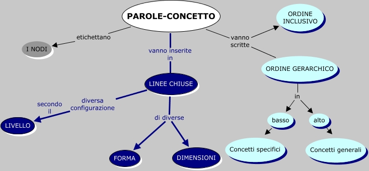 Questa Mappa Concettuale ha informazioni correlate a: paroleconcetto, PAROLE-CONCETTO vanno inserite in LINEE CHIUSE, LINEE CHIUSE diversa configurazione LIVELLO, PAROLE-CONCETTO vanno scritte ORDINE INCLUSIVO, ORDINE GERARCHICO in basso, LINEE CHIUSE di diverse DIMENSIONI, PAROLE-CONCETTO etichettano I NODI, LINEE CHIUSE di diverse FORMA, basso ???? Concetti specifici, alto ???? Concetti generali, ORDINE GERARCHICO in alto, PAROLE-CONCETTO vanno scritte ORDINE GERARCHICO