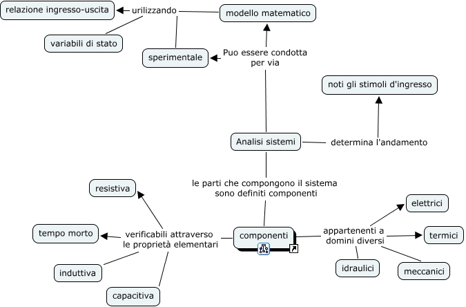 Questa Cmap, creata con IHMC CmapTools, contiene informazioni relative a: Analisi di un sistema, modello matematico urilizzando relazione ingresso-uscita, sperimentale urilizzando relazione ingresso-uscita, componenti verificabili attraverso le proprietà elementari resistiva, componenti appartenenti a domini diversi termici, componenti appartenenti a domini diversi meccanici, Analisi sistemi le parti che compongono il sistema sono definiti componenti componenti, sperimentale urilizzando variabili di stato, Analisi sistemi Puo essere condotta per via sperimentale, componenti verificabili attraverso le proprietà elementari capacitiva, componenti verificabili attraverso le proprietà elementari tempo morto, componenti verificabili attraverso le proprietà elementari induttiva, componenti appartenenti a domini diversi idraulici, modello matematico urilizzando variabili di stato, Analisi sistemi determina l'andamento noti gli stimoli d'ingresso, componenti appartenenti a domini diversi elettrici, Analisi sistemi Puo essere condotta per via modello matematico