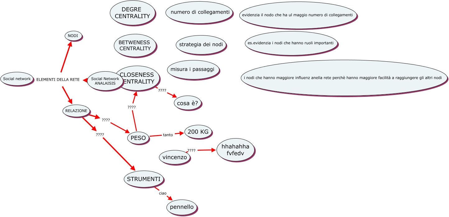 Questa Cmap, creata con IHMC CmapTools, contiene informazioni relative a: serena, vincenzo ???? hhahahha fvfedv, STRUMENTI ciao pennello, RELAZIONE ???? PESO, PESO tanto 200 KG, RELAZIONE ???? STRUMENTI, CLOSENESS CENTRALITY ???? cosa è?, Social Network ANALAISIS ELEMENTI DELLA RETE NODI, Social Network ANALAISIS ELEMENTI DELLA RETE RELAZIONE, PESO ???? CLOSENESS CENTRALITY