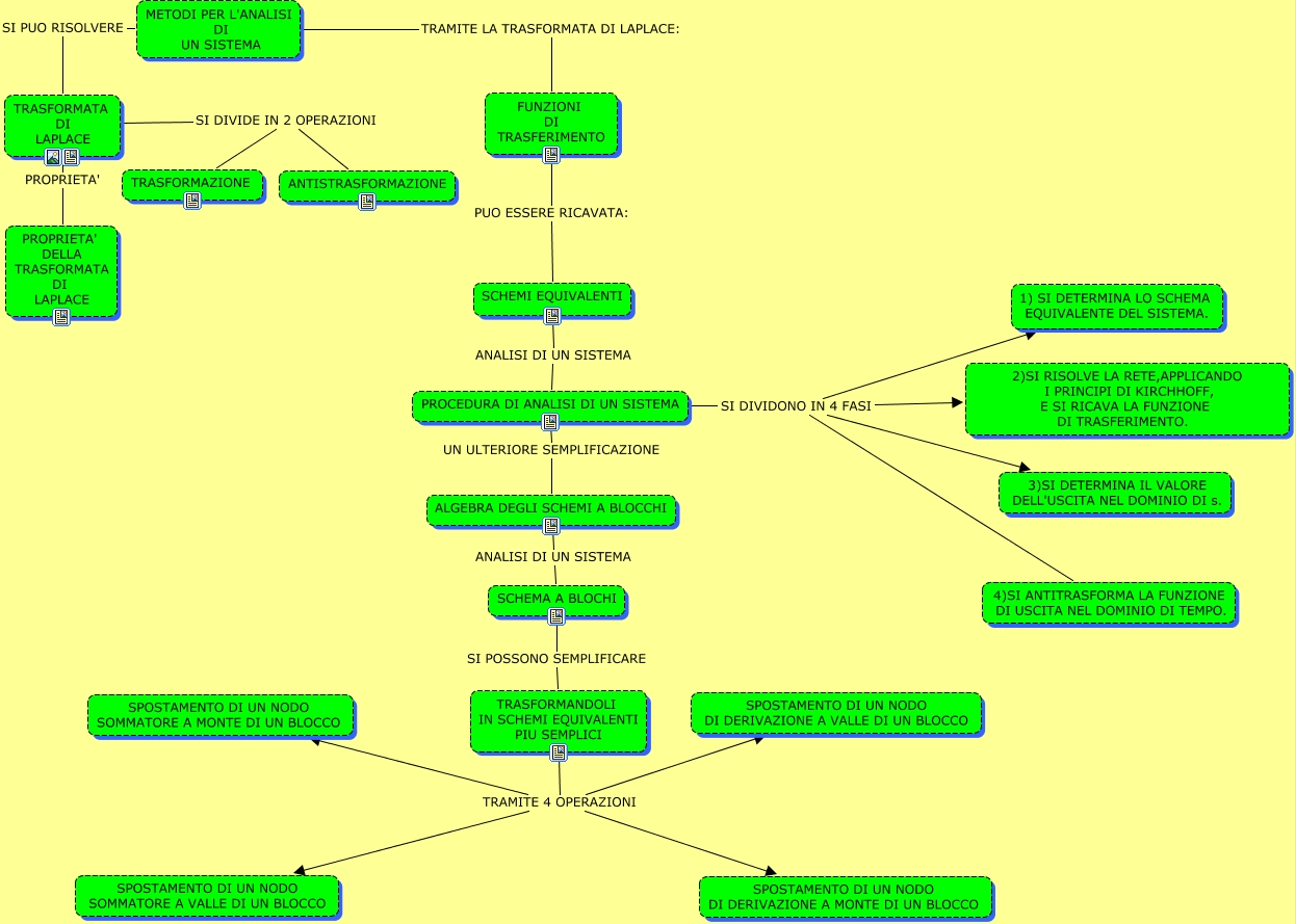Questa Cmap, creata con IHMC CmapTools, contiene informazioni relative a: SISTEMI, TRASFORMANDOLI IN SCHEMI EQUIVALENTI PIU SEMPLICI TRAMITE 4 OPERAZIONI SPOSTAMENTO DI UN NODO DI DERIVAZIONE A VALLE DI UN BLOCCO, PROCEDURA DI ANALISI DI UN SISTEMA SI DIVIDONO IN 4 FASI 2)SI RISOLVE LA RETE,APPLICANDO I PRINCIPI DI KIRCHHOFF, E SI RICAVA LA FUNZIONE DI TRASFERIMENTO., SCHEMI EQUIVALENTI ANALISI DI UN SISTEMA PROCEDURA DI ANALISI DI UN SISTEMA, PROCEDURA DI ANALISI DI UN SISTEMA SI DIVIDONO IN 4 FASI 3)SI DETERMINA IL VALORE DELL'USCITA NEL DOMINIO DI s., TRASFORMANDOLI IN SCHEMI EQUIVALENTI PIU SEMPLICI TRAMITE 4 OPERAZIONI SPOSTAMENTO DI UN NODO SOMMATORE A MONTE DI UN BLOCCO, ALGEBRA DEGLI SCHEMI A BLOCCHI ANALISI DI UN SISTEMA SCHEMA A BLOCHI, METODI PER L'ANALISI DI UN SISTEMA TRAMITE LA TRASFORMATA DI LAPLACE: FUNZIONI DI TRASFERIMENTO, METODI PER L'ANALISI DI UN SISTEMA SI PUO RISOLVERE TRASFORMATA DI LAPLACE, PROCEDURA DI ANALISI DI UN SISTEMA SI DIVIDONO IN 4 FASI 1) SI DETERMINA LO SCHEMA EQUIVALENTE DEL SISTEMA., TRASFORMATA DI LAPLACE PROPRIETA' PROPRIETA' DELLA TRASFORMATA DI LAPLACE, TRASFORMANDOLI IN SCHEMI EQUIVALENTI PIU SEMPLICI TRAMITE 4 OPERAZIONI SPOSTAMENTO DI UN NODO DI DERIVAZIONE A MONTE DI UN BLOCCO, FUNZIONI DI TRASFERIMENTO PUO ESSERE RICAVATA: SCHEMI EQUIVALENTI, TRASFORMATA DI LAPLACE SI DIVIDE IN 2 OPERAZIONI TRASFORMAZIONE, TRASFORMATA DI LAPLACE SI DIVIDE IN 2 OPERAZIONI ANTISTRASFORMAZIONE, TRASFORMANDOLI IN SCHEMI EQUIVALENTI PIU SEMPLICI TRAMITE 4 OPERAZIONI SPOSTAMENTO DI UN NODO SOMMATORE A VALLE DI UN BLOCCO, SCHEMA A BLOCHI SI POSSONO SEMPLIFICARE TRASFORMANDOLI IN SCHEMI EQUIVALENTI PIU SEMPLICI, PROCEDURA DI ANALISI DI UN SISTEMA UN ULTERIORE SEMPLIFICAZIONE ALGEBRA DEGLI SCHEMI A BLOCCHI, PROCEDURA DI ANALISI DI UN SISTEMA SI DIVIDONO IN 4 FASI 4)SI ANTITRASFORMA LA FUNZIONE DI USCITA NEL DOMINIO DI TEMPO.