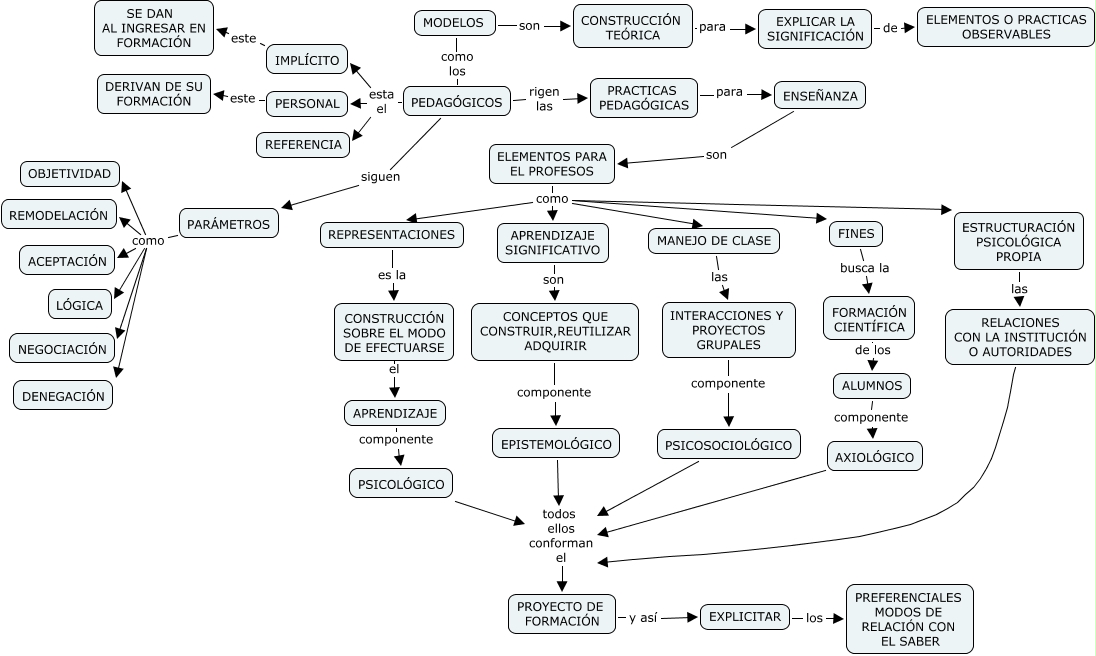 Este Cmap, tiene información relacionada con: 5 Modelo pedagogico, CONCEPTOS QUE CONSTRUIR,REUTILIZAR ADQUIRIR componente EPISTEMOLÓGICO, FINES busca la FORMACIÓN CIENTÍFICA, CONSTRUCCIÓN SOBRE EL MODO DE EFECTUARSE el APRENDIZAJE, PARÁMETROS como LÓGICA, PEDAGÓGICOS esta el PERSONAL, FORMACIÓN CIENTÍFICA de los ALUMNOS, PARÁMETROS como REMODELACIÓN, PEDAGÓGICOS siguen PARÁMETROS, CONSTRUCCIÓN TEÓRICA para EXPLICAR LA SIGNIFICACIÓN, MODELOS como los PEDAGÓGICOS, EPISTEMOLÓGICO todos ellos conforman el PROYECTO DE FORMACIÓN, ESTRUCTURACIÓN PSICOLÓGICA PROPIA las RELACIONES CON LA INSTITUCIÓN O AUTORIDADES, PARÁMETROS como DENEGACIÓN, PEDAGÓGICOS esta el IMPLÍCITO, PROYECTO DE FORMACIÓN y así EXPLICITAR, PEDAGÓGICOS esta el REFERENCIA, ELEMENTOS PARA EL PROFESOS como MANEJO DE CLASE, MANEJO DE CLASE las INTERACCIONES Y PROYECTOS GRUPALES, PERSONAL este DERIVAN DE SU FORMACIÓN, ELEMENTOS PARA EL PROFESOS como REPRESENTACIONES