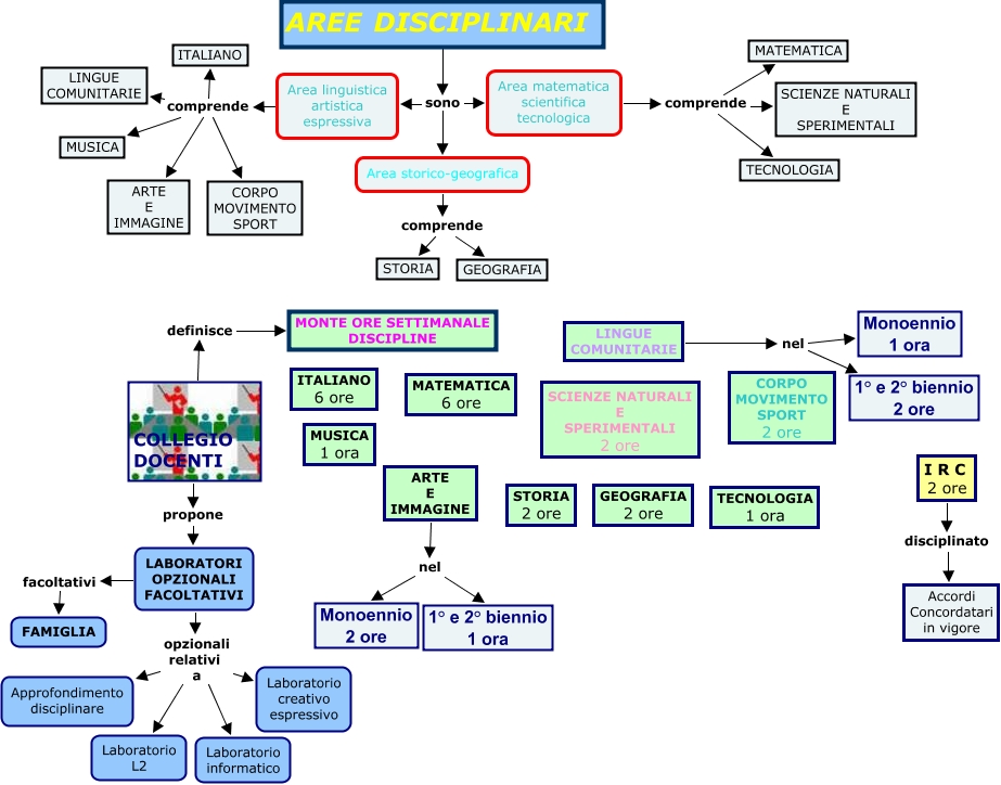 Questa Cmap, creata con IHMC CmapTools, contiene informazioni relative a: Aree_discipline 2, LABORATORI OPZIONALI FACOLTATIVI opzionali relativi a Laboratorio informatico, Area linguistica artistica espressiva comprende MUSICA, AREE DISCIPLINARI sono Area linguistica artistica espressiva, Area storico-geografica comprende GEOGRAFIA, LABORATORI OPZIONALI FACOLTATIVI facoltativi FAMIGLIA, Area matematica scientifica tecnologica comprende MATEMATICA, COLLEGIO DOCENTI definisce MONTE ORE SETTIMANALE DISCIPLINE, LINGUE COMUNITARIE nel Monoennio 1 ora, AREE DISCIPLINARI sono Area storico-geografica, LABORATORI OPZIONALI FACOLTATIVI opzionali relativi a Laboratorio L2, ARTE E IMMAGINE nel Monoennio 2 ore, LABORATORI OPZIONALI FACOLTATIVI opzionali relativi a Laboratorio creativo espressivo, I R C 2 ore disciplinato Accordi Concordatari in vigore, AREE DISCIPLINARI sono Area matematica scientifica tecnologica, LABORATORI OPZIONALI FACOLTATIVI opzionali relativi a Approfondimento disciplinare, Area matematica scientifica tecnologica comprende SCIENZE NATURALI E SPERIMENTALI, Area linguistica artistica espressiva comprende ARTE E IMMAGINE, COLLEGIO DOCENTI propone LABORATORI OPZIONALI FACOLTATIVI, ARTE E IMMAGINE nel 1° e 2° biennio 1 ora, Area linguistica artistica espressiva comprende CORPO MOVIMENTO SPORT