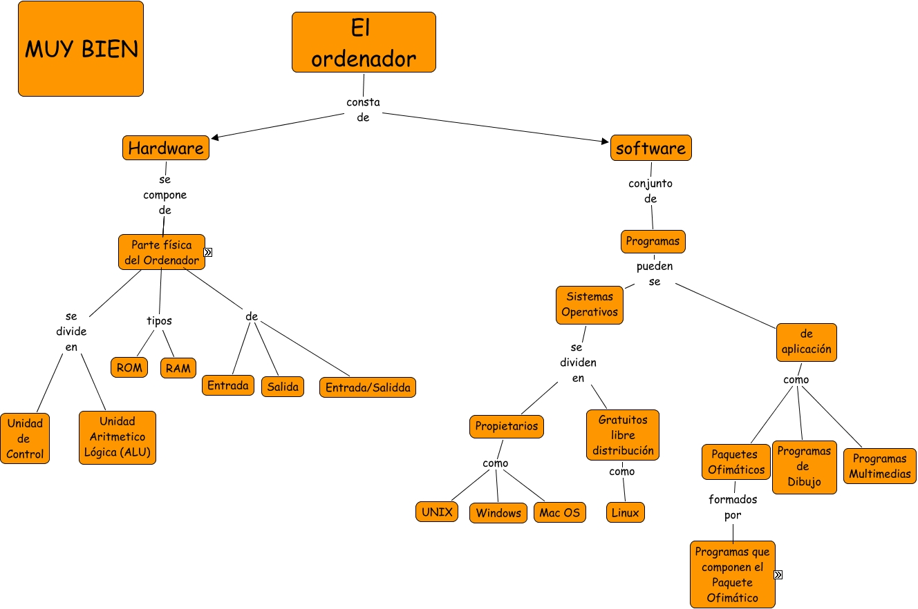 Este Cmap, tiene información relacionada con: tarea_6.1, ???? se divide en Unidad Aritmetico Lógica (ALU), El ordenador consta de Hardware, Sistemas Operativos se dividen en Gratuitos libre distribución, Hardware se compone de Memorias, Sistemas Operativos se dividen en Propietarios, software conjunto de Programas, Paquetes Ofimáticos formados por Procesador de Texto, Programas pueden se de aplicación, Gratuitos libre distribución como Linux, Propietarios como UNIX, ???? se divide en Unidad de Control, de aplicación como Programas Multimedias, El ordenador consta de software, Memorias tipos ROM, Paquetes Ofimáticos formados por Hoja de Cálculo, Programas pueden se Sistemas Operativos, Periféricos de Entrada, Hardware se compone de Periféricos, Periféricos de Entrada/Salidda, Memorias tipos RAM