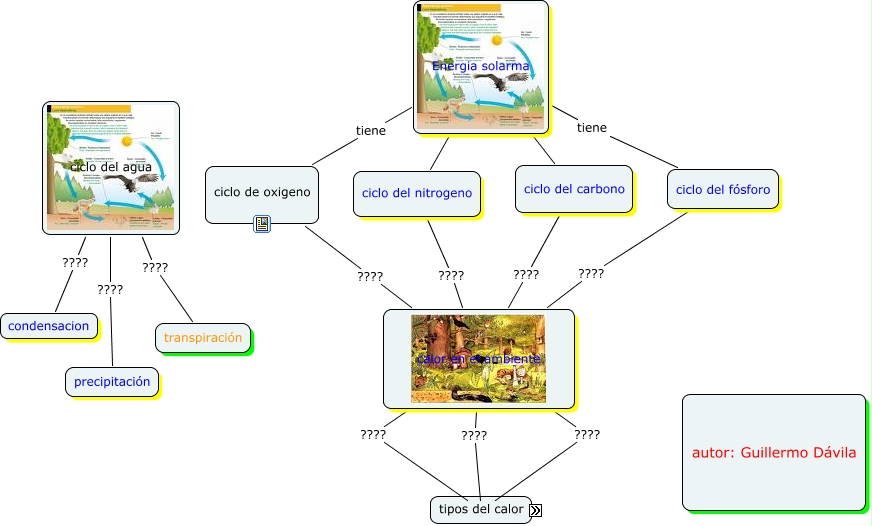 Este Cmap, tiene información relacionada con: ecosistemas, ciclo del agua ???? condensacion, calor en el ambiente ???? CALOR, ciclo del fósforo ???? calor en el ambiente, ciclo del nitrogeno ???? calor en el ambiente, ciclo de oxigeno ???? calor en el ambiente, Energia solarma tiene ciclo de oxigeno, ciclo del agua ???? transpiración, calor en el ambiente ???? CALOR, calor en el ambiente ???? CALOR, ciclo del carbono ???? calor en el ambiente, Energia solarma tiene ciclo del carbono, Energia solarma tiene ciclo del nitrogeno, ciclo del agua ???? precipitación, Energia solarma tiene ciclo del fósforo