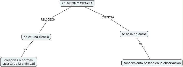 Este Cmap, tiene información relacionada con: ciencia y religión, se basa en datos es conocimiento basado en la observación, RELIGION Y CIENCIA CIENCIA se basa en datos, no es una ciencia es creencias o normas acerca de la divinidad, RELIGION Y CIENCIA RELIGION no es una ciencia